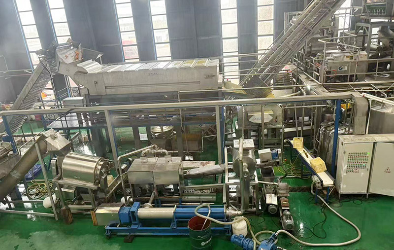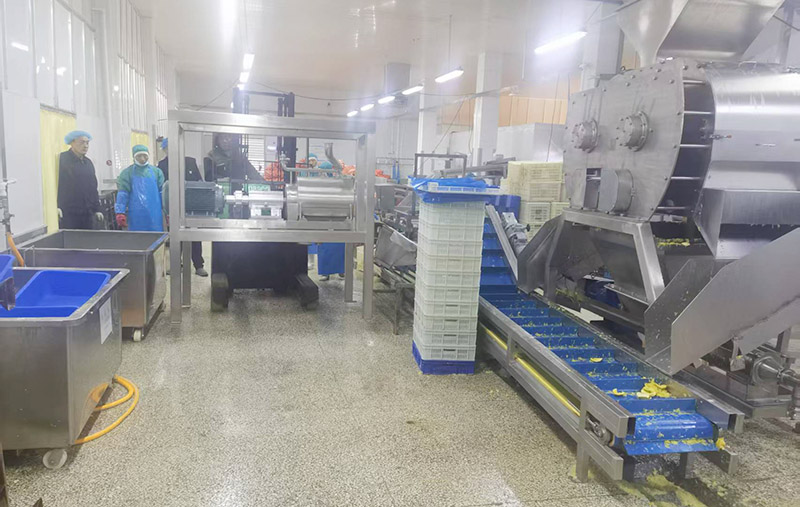 1.清洗:原料經流水輸送至清洗設備中,用毛刷式清洗機清洗,並用含氯10~30ppm的清洗水噴淋後經清潔水衝洗。