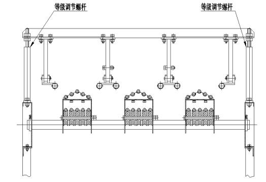 注意:①分級調整螺栓調節時,應機器左右兩邊兩個調整螺栓同時調且調整的長度要保持一致。