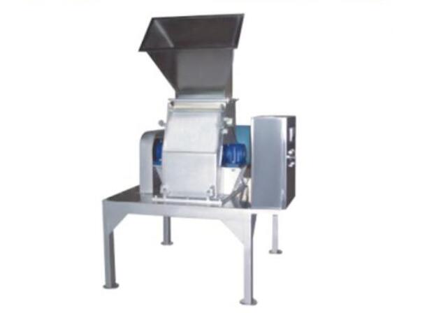 水果係列錘式破碎機工作時電機經聯軸器直連等速驅動主軸旋轉,主軸上裝有飛刀高速旋轉。物料由升運機(或螺杆泵等)上輸入進料鬥中,被高速旋轉的飛刀切碎,由於離心力的效果,物料由腰形孔的篩網落入另置的儲罐中,然後由輸料泵輸出到下道工序。