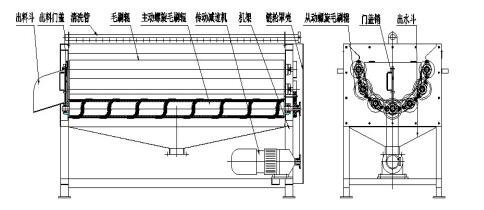 該毛刷去皮清洗機主要由機架、傳動減速機、鏈輪罩殼、噴淋管、毛刷輥、出水鬥、出料門蓋、出料鬥、門蓋插銷等部件組成。