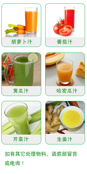 該設備是螺旋推進擠壓,利用雙極螺旋腔體體積的逐步縮小,從而形成對物料的壓榨,該機適用於對破碎過的果蔬榨汁,出汁率高。